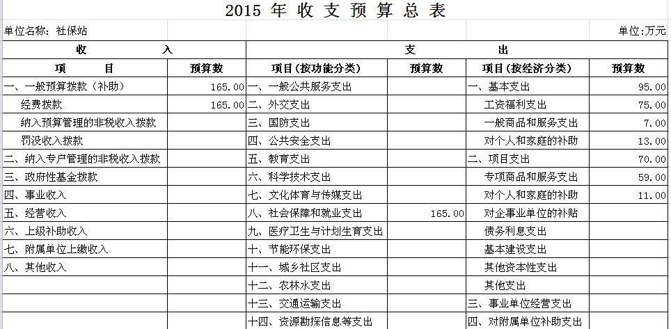2015年社保站收支预算总表及“三公”经费预算表