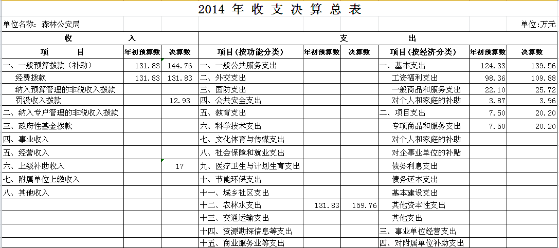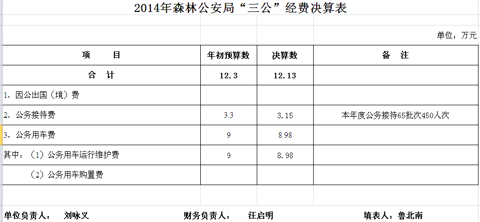 2014年森林公安局收支决算总表及“三公”经费决算表