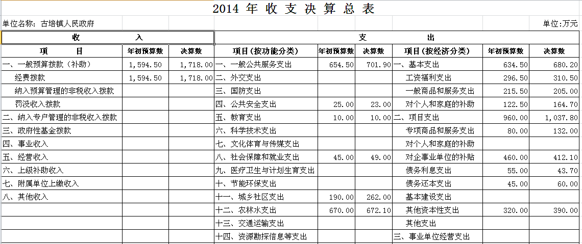 2014年汨罗市古培镇部门单位决算和“三公”经费决算公开表