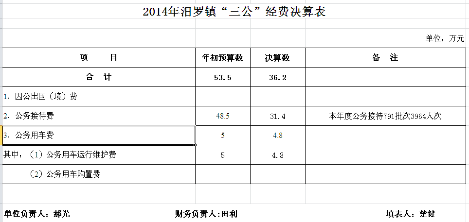 2014年汨罗市汨罗镇部门单位决算和“三公”经费决算公开表