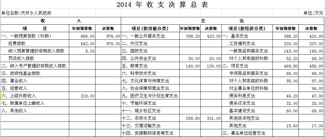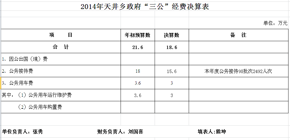2014年汨罗市天井乡部门单位决算和“三公”经费决算公开表