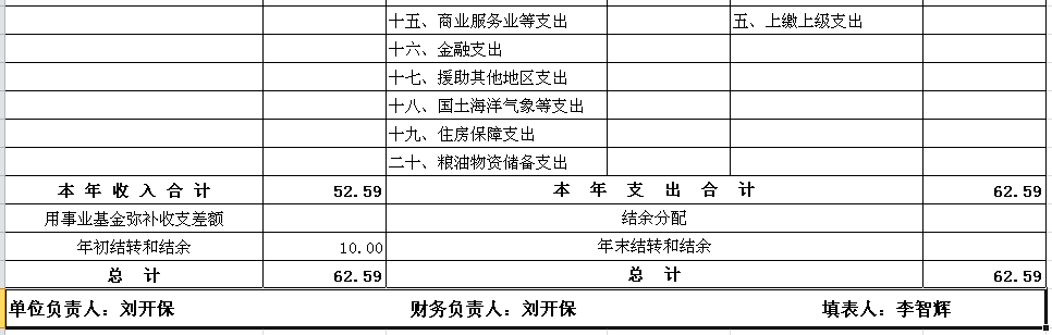 预算总支出62.59万元,其中:基本支出52.59万元(工资福利支出50.84万元、对个人和家庭补助支出1.75万元),项目支出10万元。