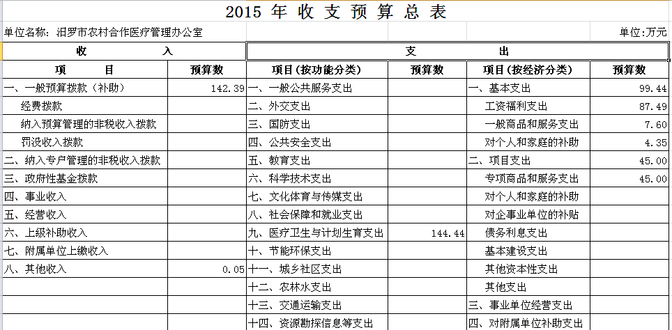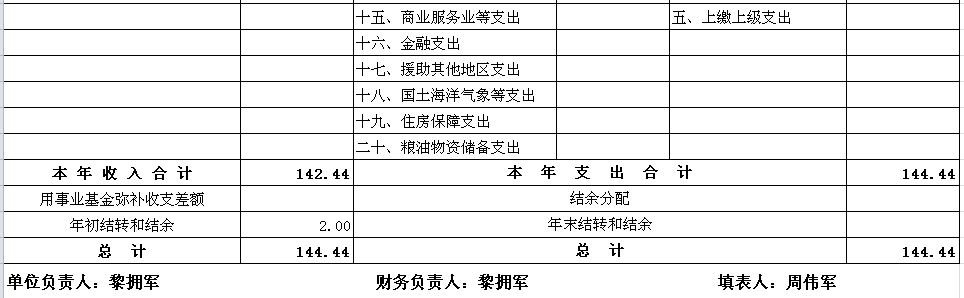 预算总收入144.44万元,其中:经费拨款142.39万元,其他收入0.05万元,上年结余2万元。
