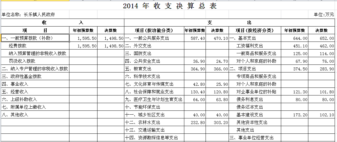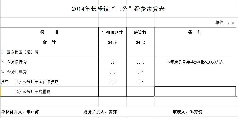 2014年汨罗市长乐镇部门单位决算和“三公”经费决算公开表