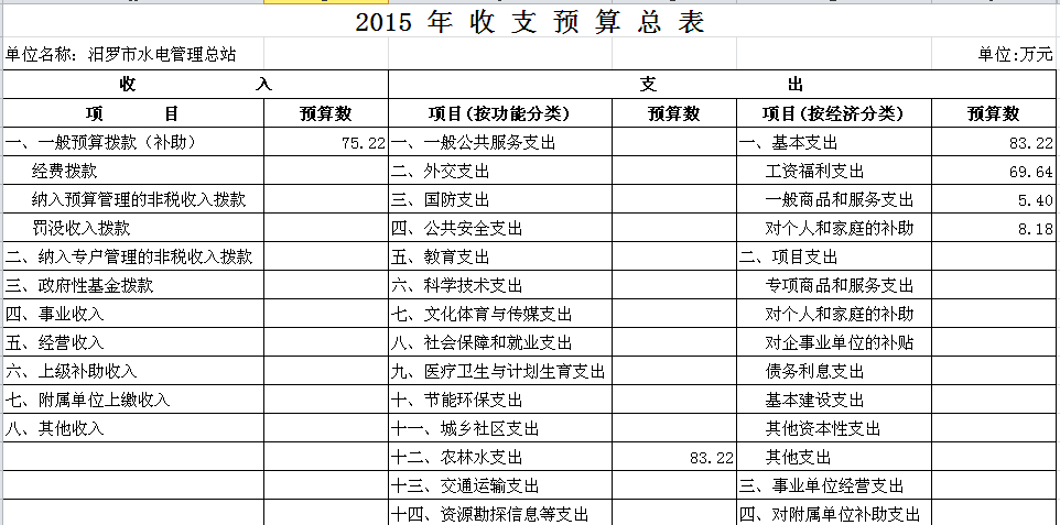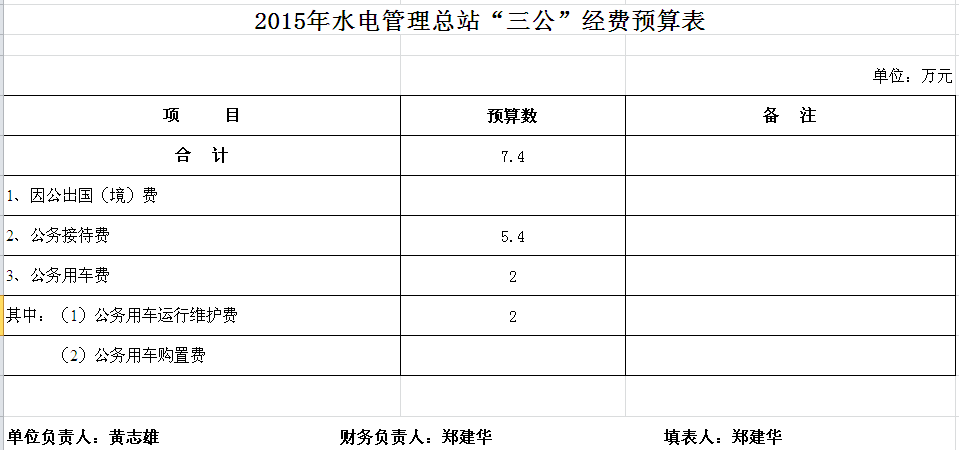 2015年水电总站收支预算总表及“三公”经费预算表