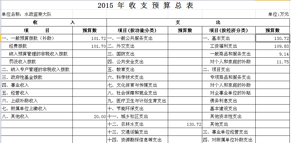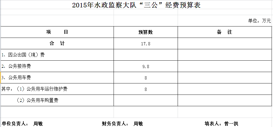 2015年水政监察大队收支预算总表及“三公”经费预算表