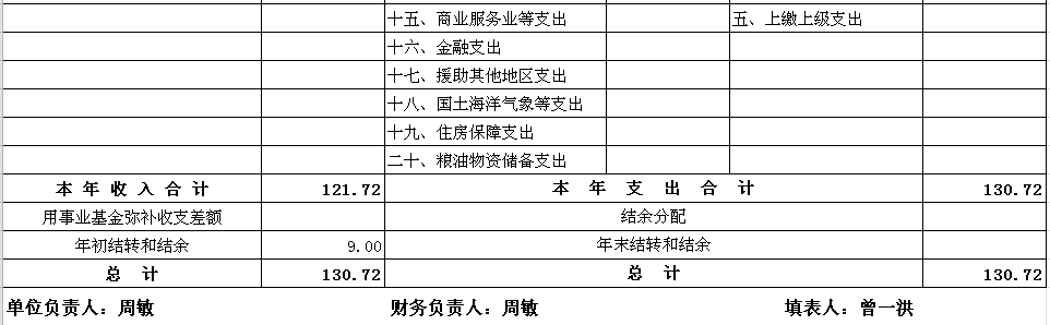 预算总支出130.72万元,其中:基本支出130.92万元(工资福利支出109.83万元、一般商品和服务支出9.14万元、对个人和家庭补助支出11.75万元。