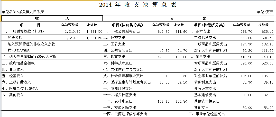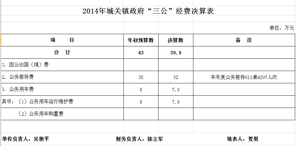 2014年汨罗市城关镇部门单位决算和“三公”经费决算公开表