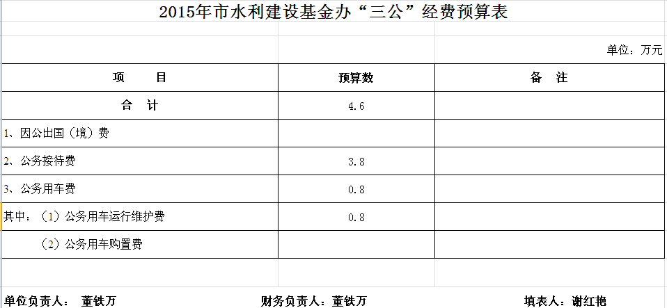 2015年水利建设基金筹集管理办公室收支预算总表及“三公”经费预算表
