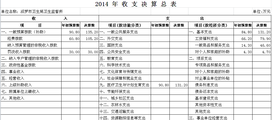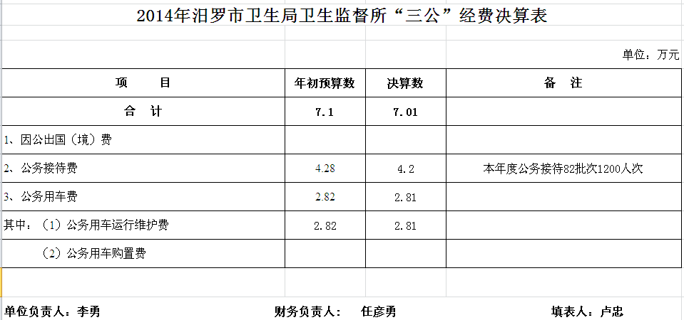 2014年汨罗市卫生局卫生监督所决算和“三公”经费决算公开表