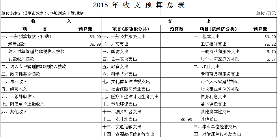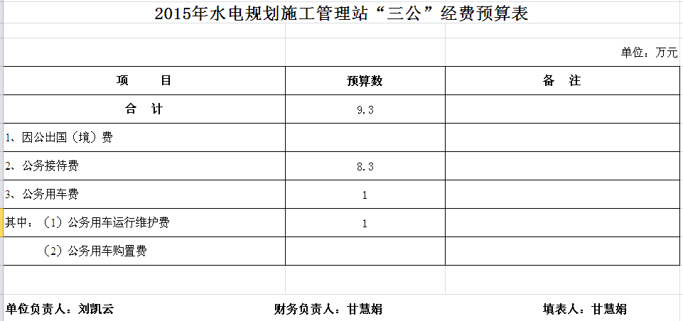 2015年水利水电规划管理站收支预算总表及“三公”经费预算表
