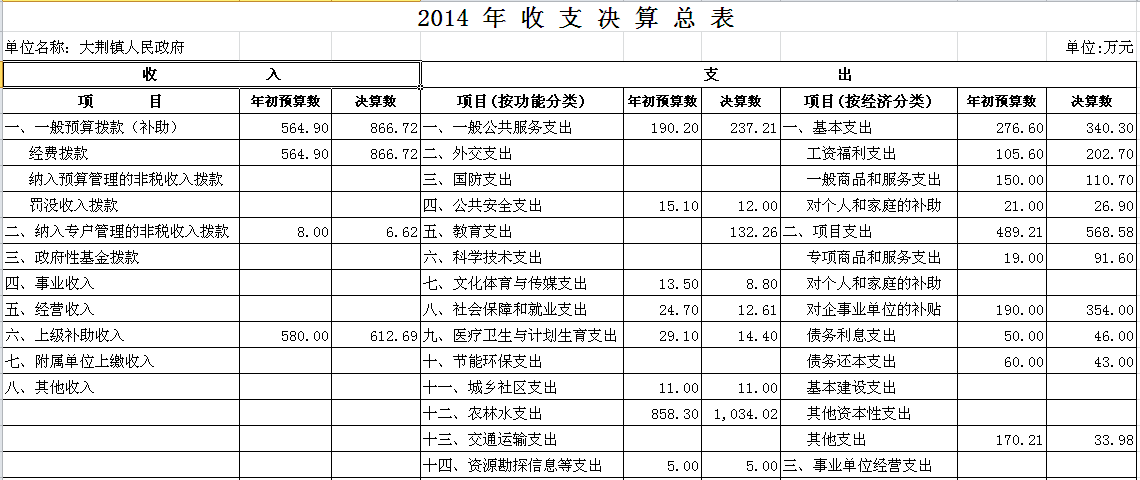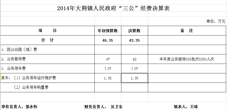 2014年汨罗市大荆镇部门单位决算和“三公”经费决算公开表