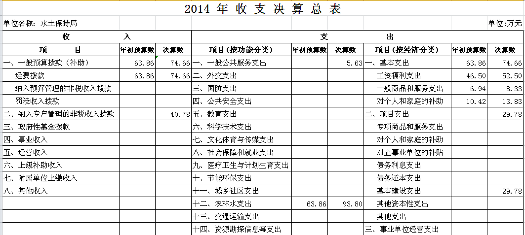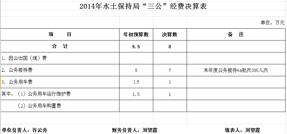 2014年水土保持局收支决算总表及“三公”经费决算表