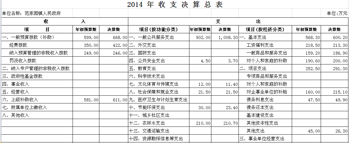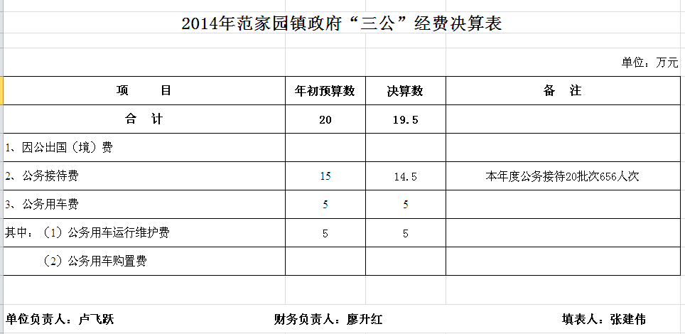 2014年汨罗市范家园镇部门单位决算和“三公”经费决算公开表