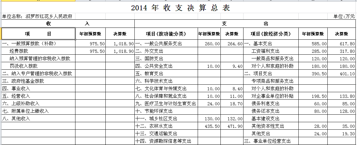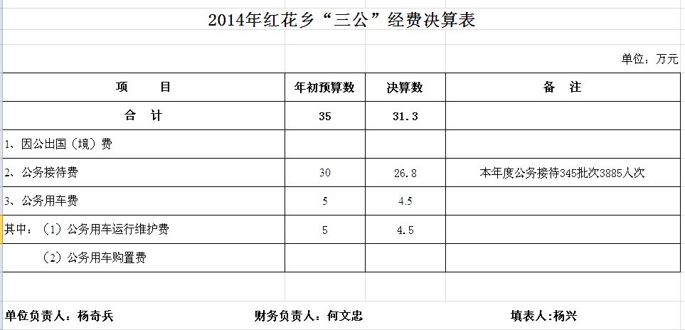2014年汨罗市红花乡部门单位决算和“三公”经费决算公开表