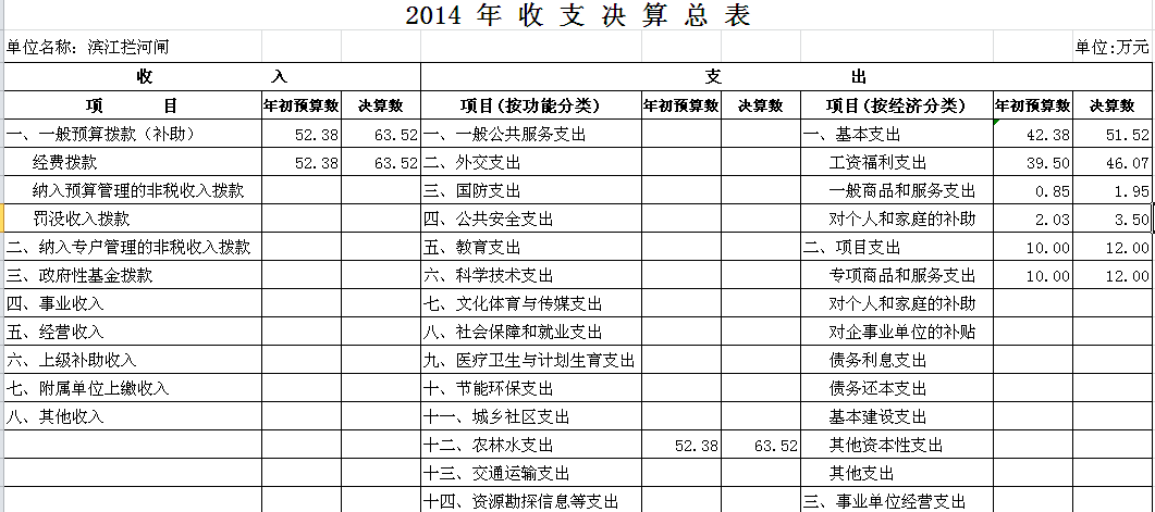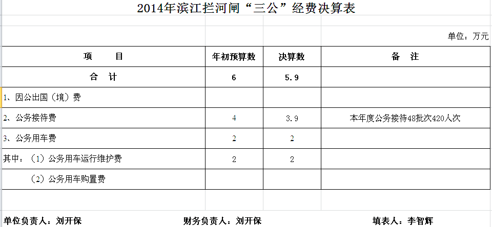 2014年滨江拦河闸收支决算总表及“三公”经费决算表
