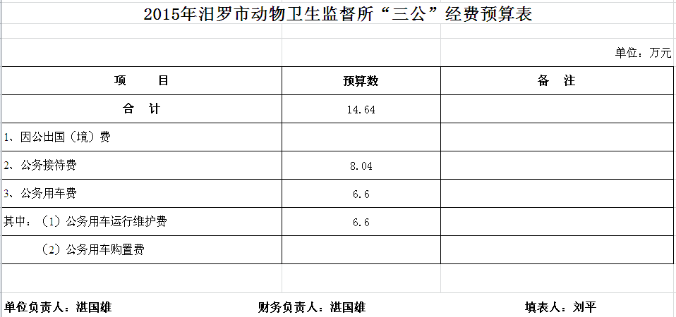2015年动物卫生监督所收支预算总表及“三公”经费预算表