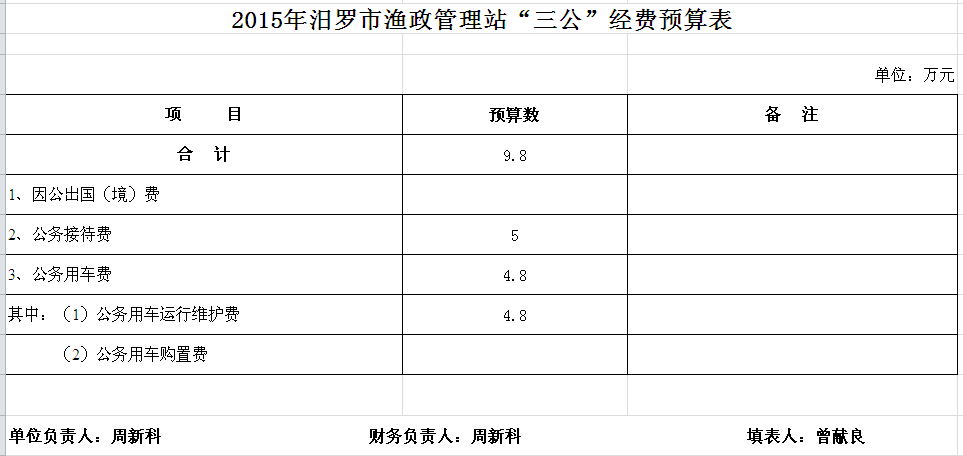 2015年渔政管理站收支预算总表及“三公”经费预算表