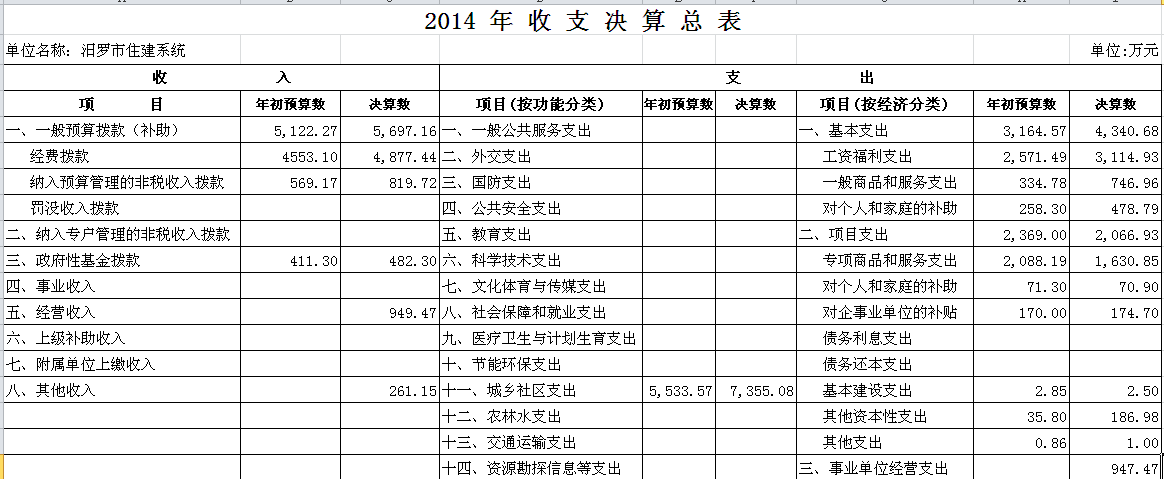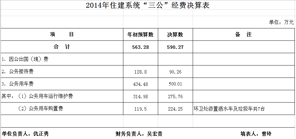 2014年住建系统收支决算总表及“三公”经费决算表