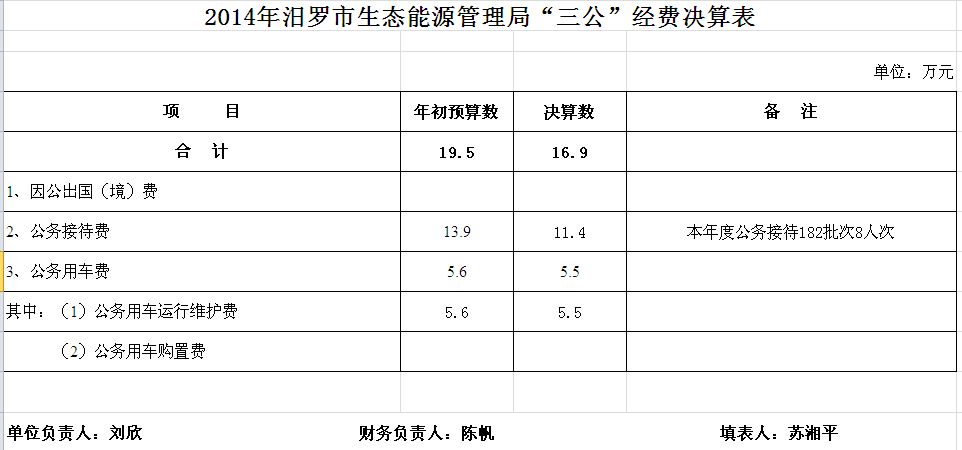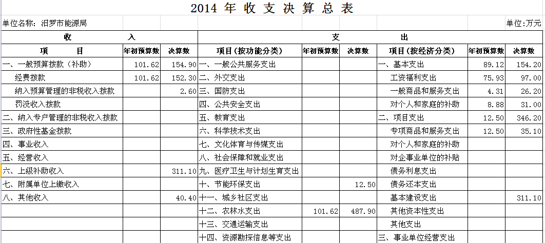 2014年汨罗市能源局收支决算总表及“三公”经费决算表