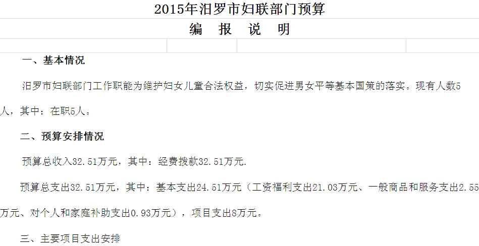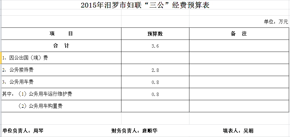 2015年市妇联收支预算总表及“三公经费”预算表