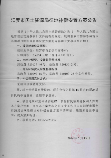 白水镇闵家巷村碧海珍稀苗木基地补偿安置方案公告