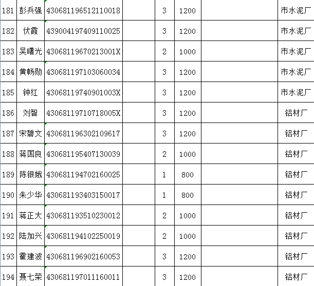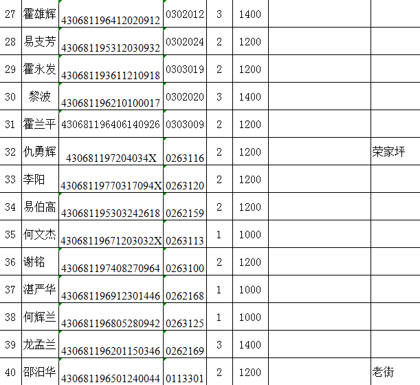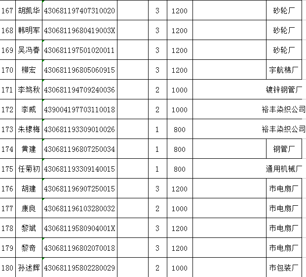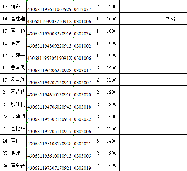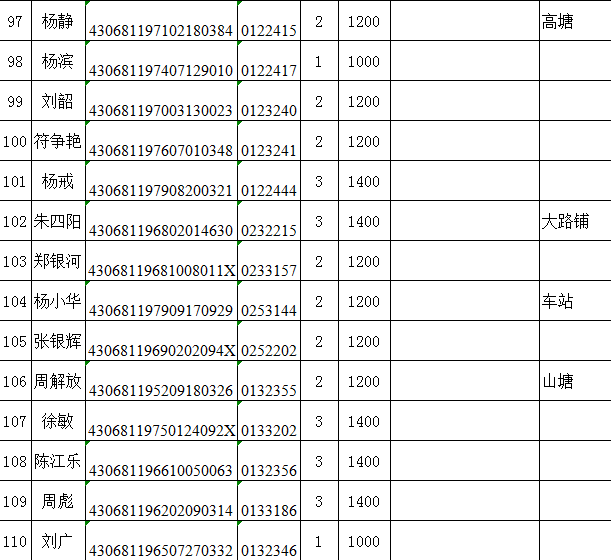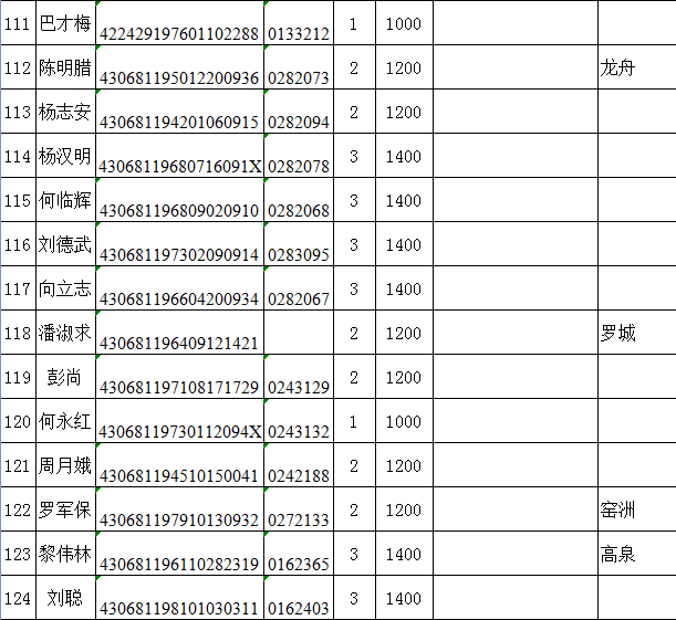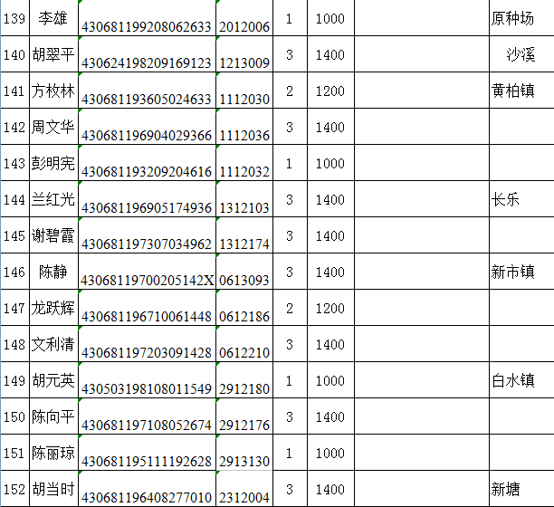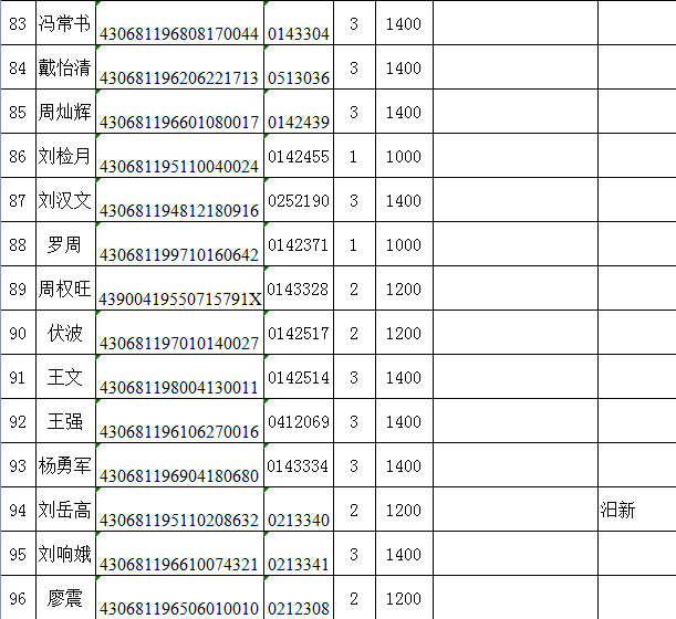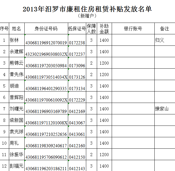 2013年汨罗市廉租住房租赁补贴发放名单 (新增户)