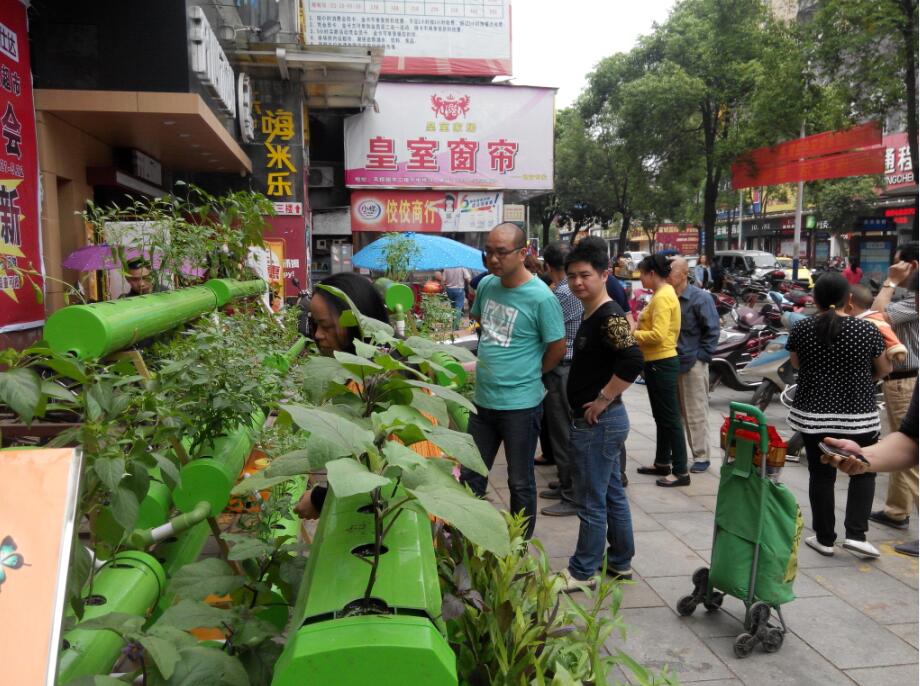 公司推出的“家庭小菜园”具有占地面积小、种植方便、栽培无菌化、操作程序科技化、蔬菜成熟时间短且产量高、浇灌用水少并能自动循环等优点。蔬菜需要施肥和浇水了,通过手机捆绑信息就会自动及时提醒用户,只需打开菜架上的按钮,这一切过程就会自动完成。由于菜架使用分层阶梯式结构,极大地利用了空间和节约了占地面积,新颖的科技程序化的种植技术引起了现场市民极大兴趣,当即就有十多位市民表示要签约公司建立“家庭小菜园”。
