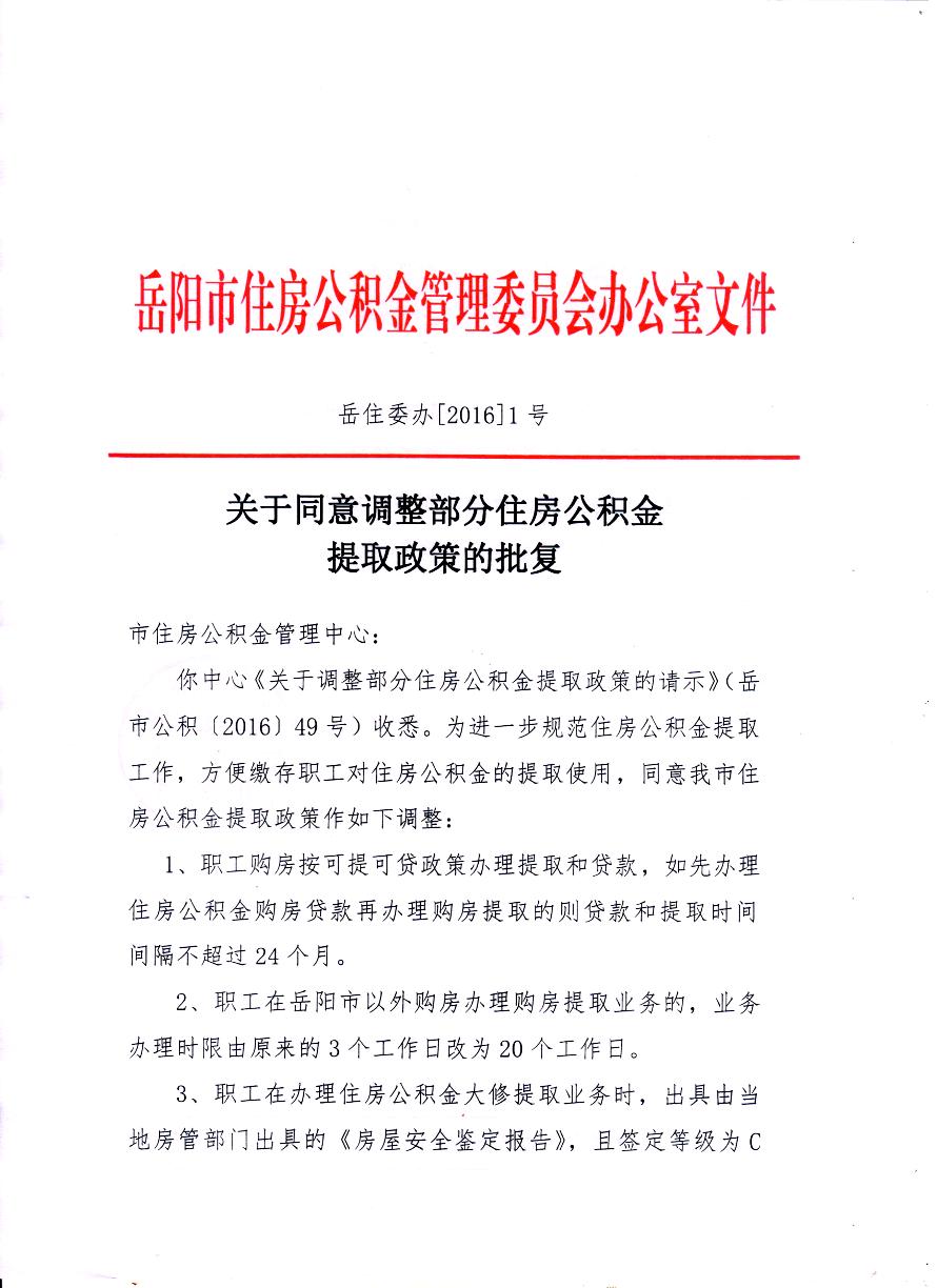 关于同意调整部分住房公积金提取政策的批复