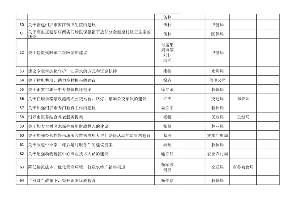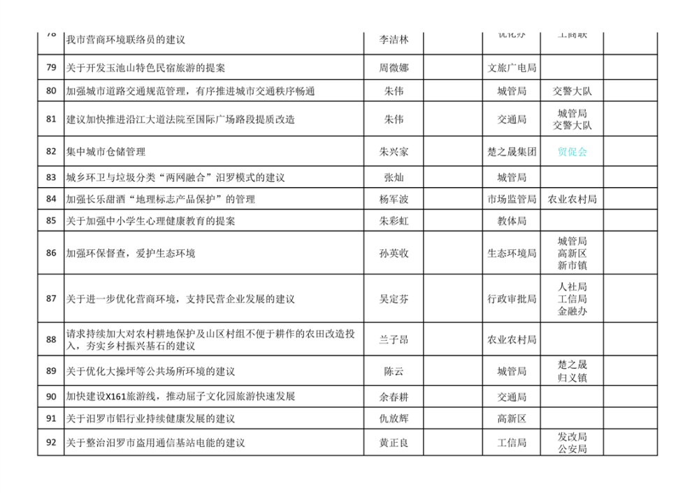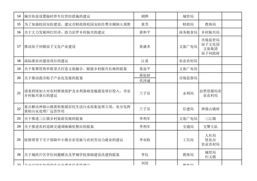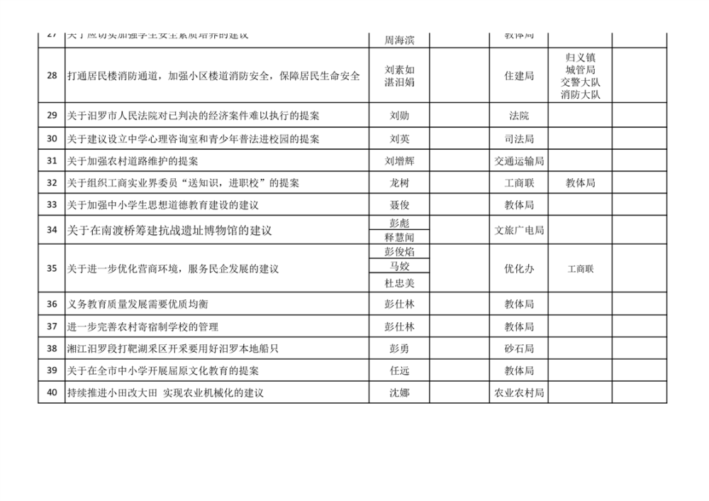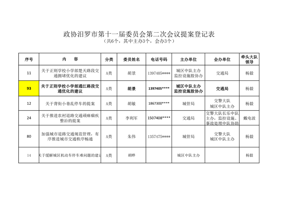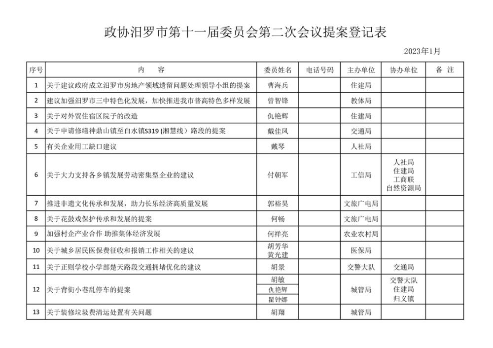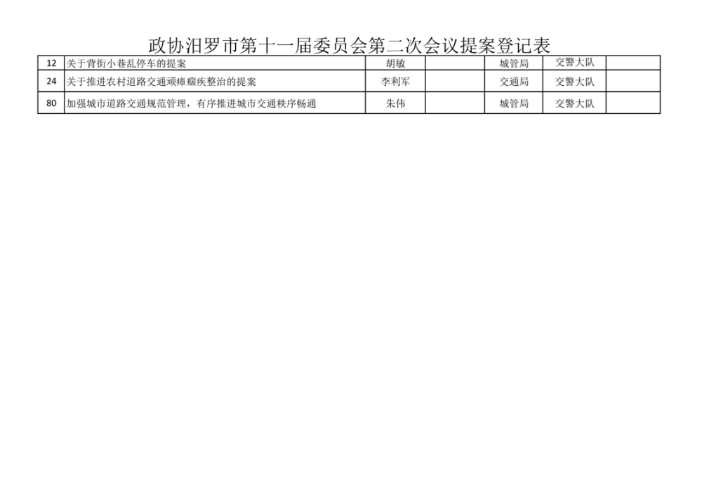 政协汨罗市第十一届委员会第二次会议提案登记表