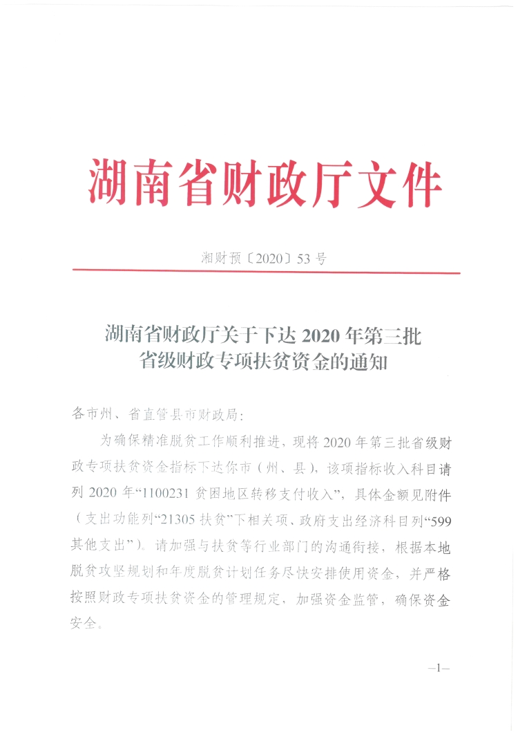 关于下达2020年第三批省级财政专项扶贫资金的通知