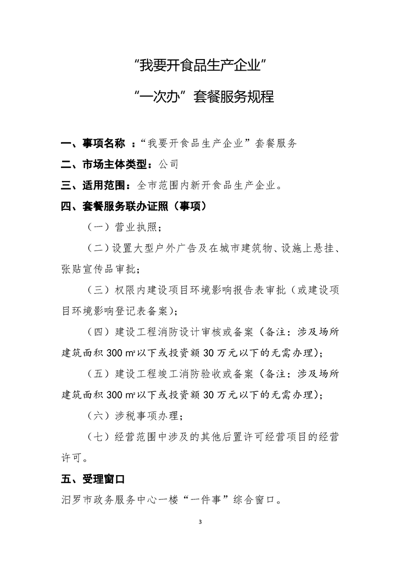 “我要开食品生产企业”“一件事”套餐服务规程(公司)