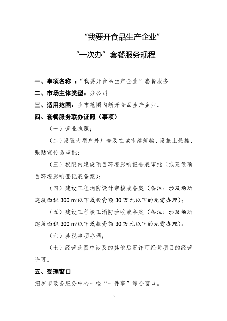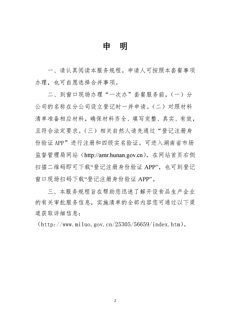 “我要开食品生产企业”“一件事”套餐服务规程(分公司)