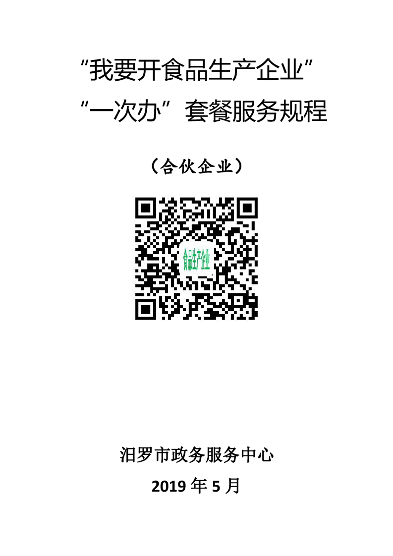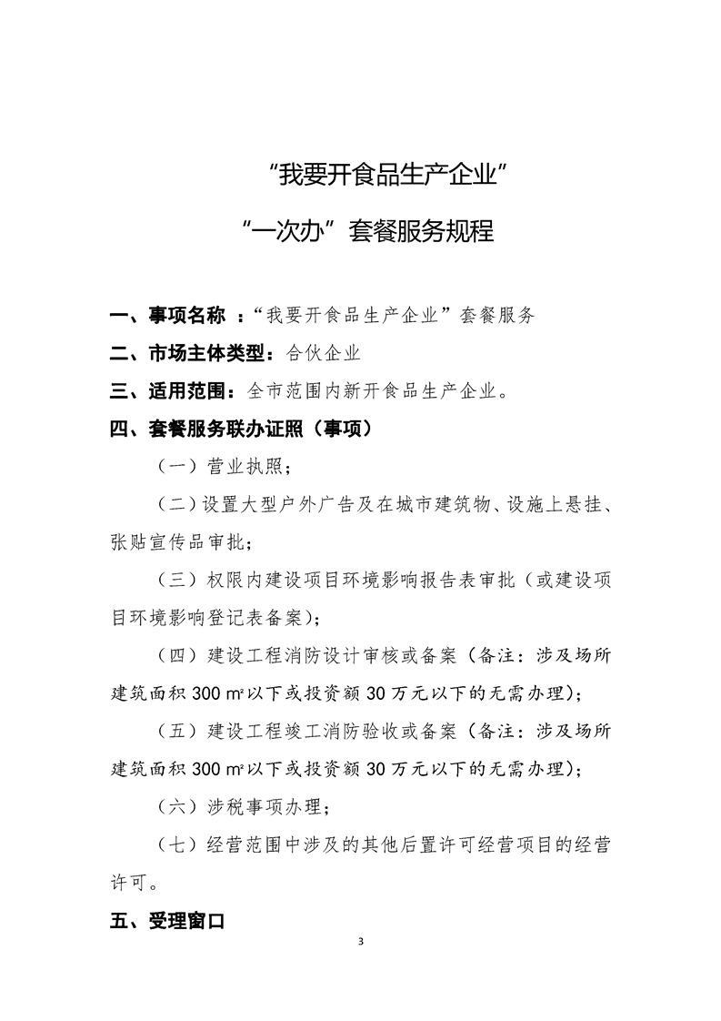 “我要开食品生产企业”“一件事”套餐服务规程(合伙企业)