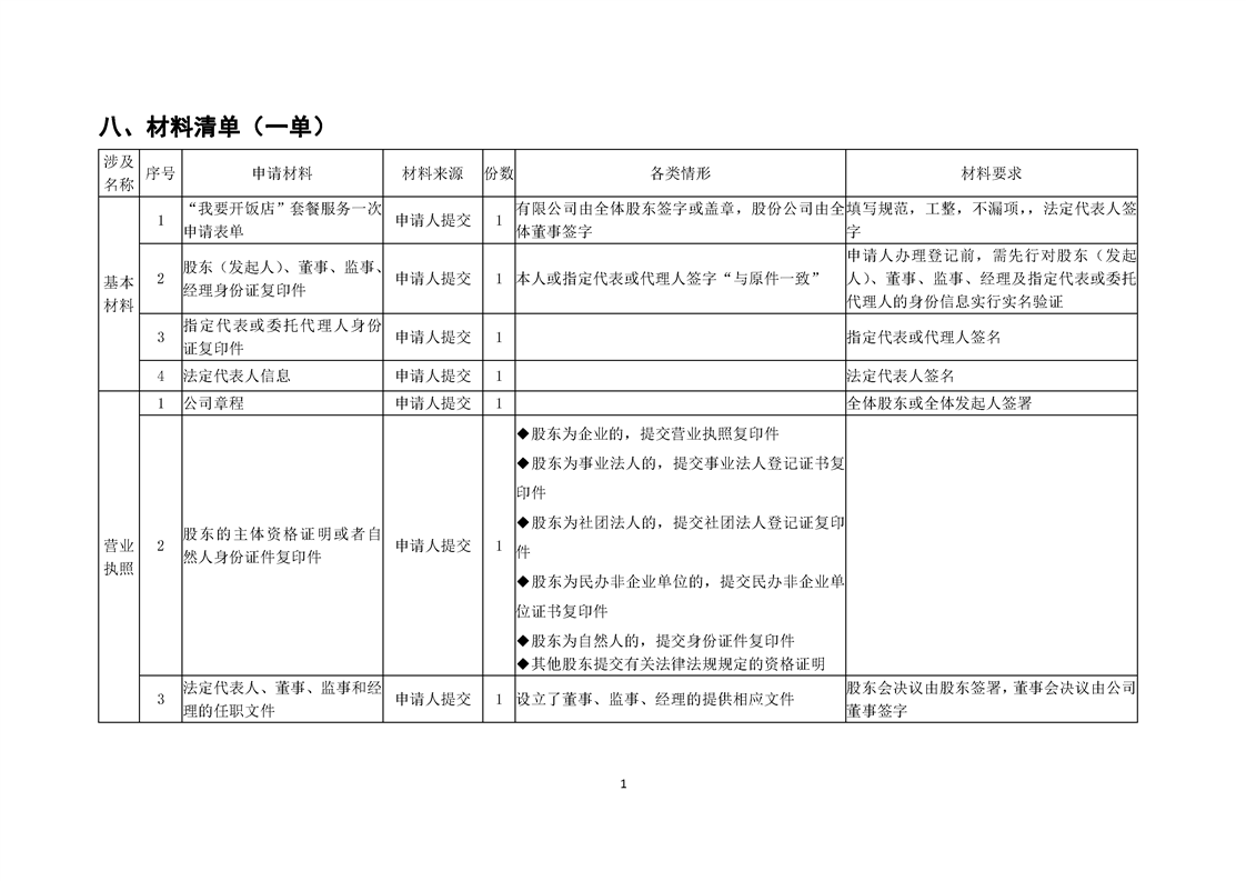 “我要开饭店”“一件事”套餐服务规程(公司)
