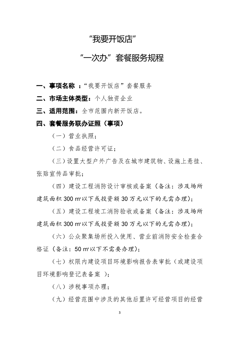 “我要开饭店”“一件事”套餐服务规程(个人独资企业)