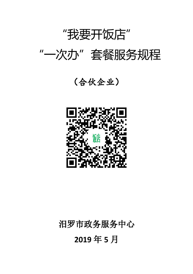 “我要开饭店”“一件事”套餐服务规程(合伙企业)