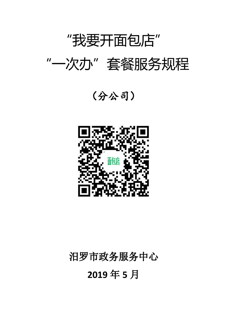“我要开面包店”“一件事”套餐服务规程(分公司)