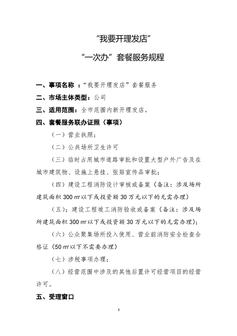 “我要开理发店”“一件事”套餐服务规程(公司)