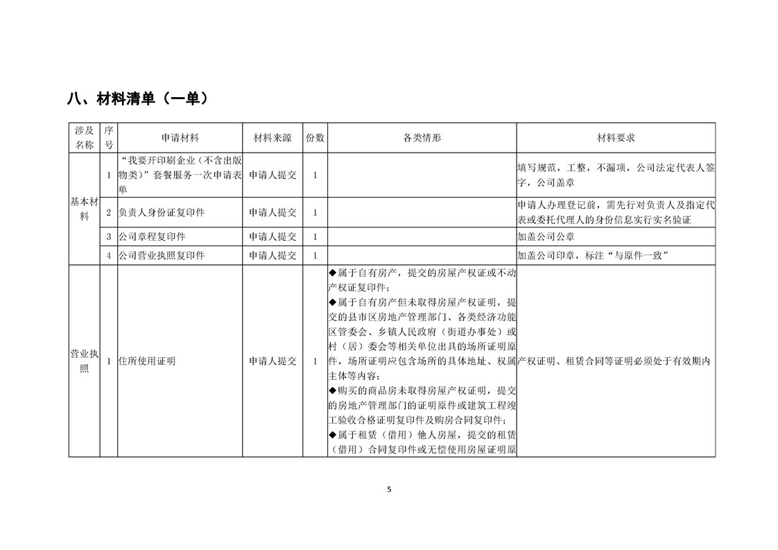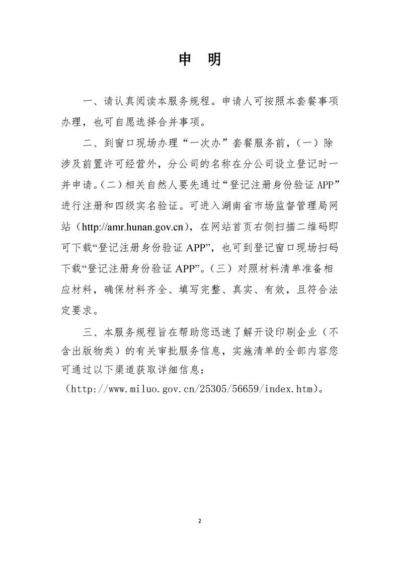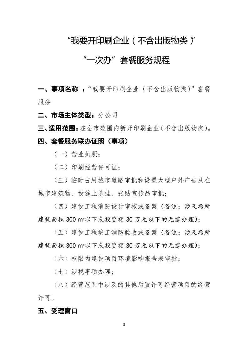 “我要开印刷企业(不含出版物类)”“一件事”套餐服务规程(分公司)