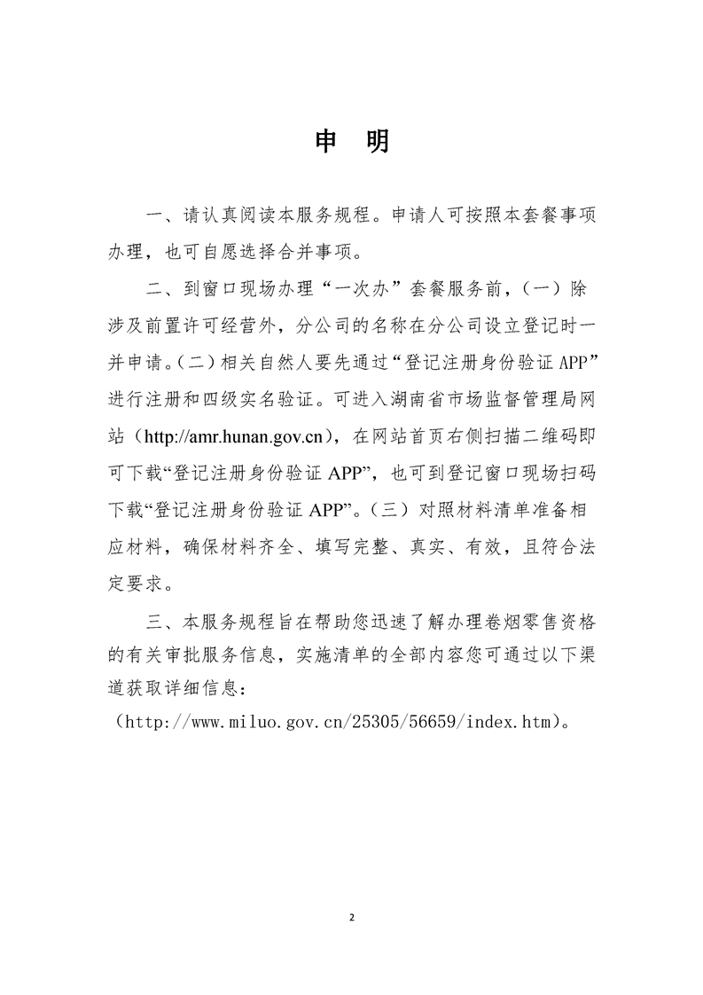 “我要办卷烟零售资格”“一件事”套餐服务规程(分公司)