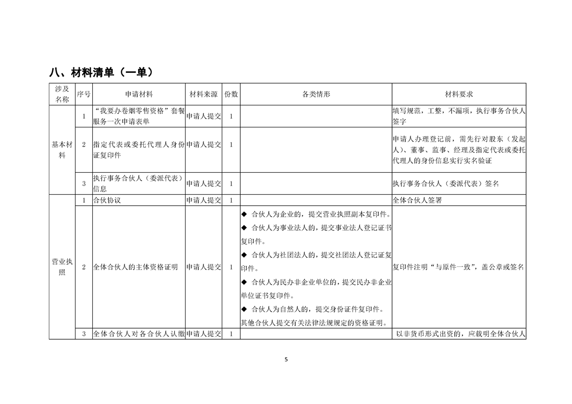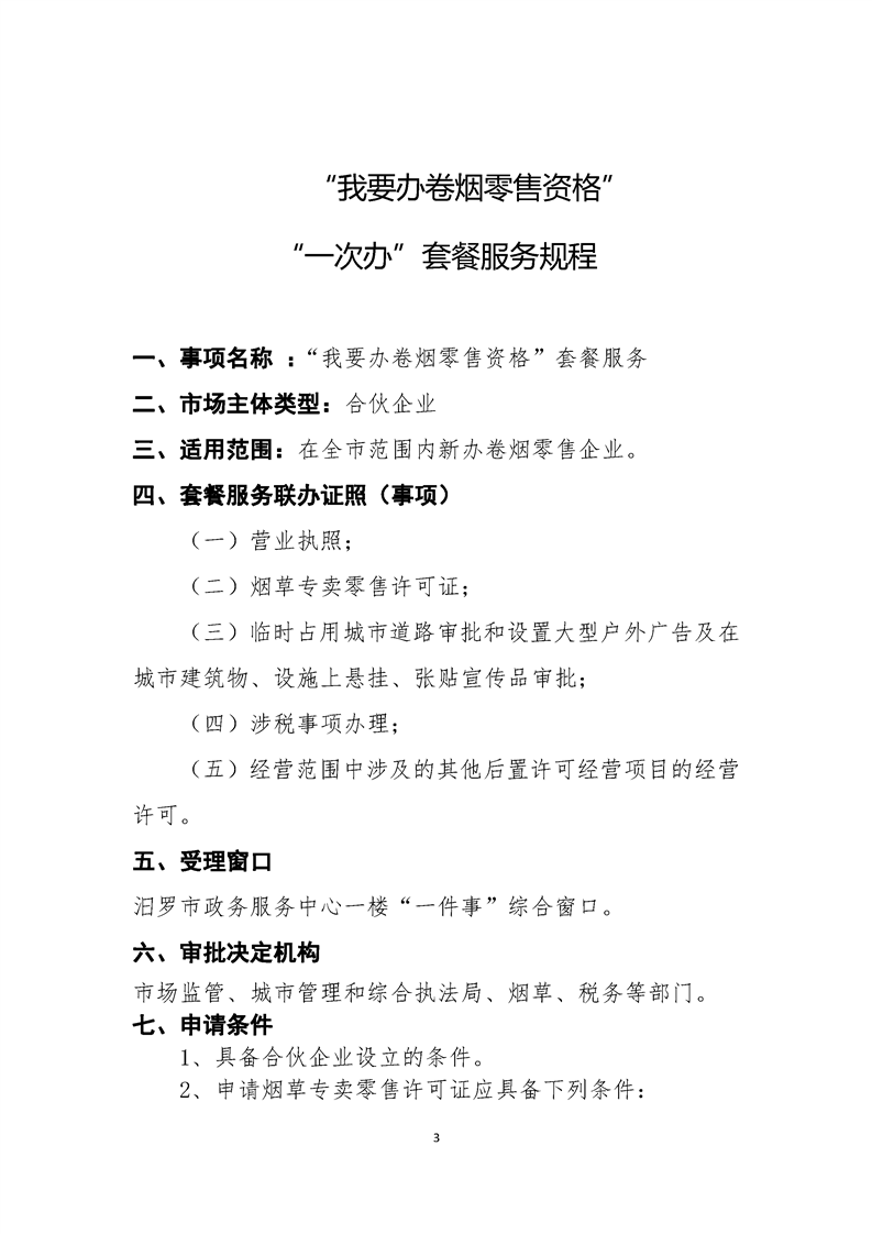 “我要办卷烟零售资格”“一件事”套餐服务规程(合伙企业)