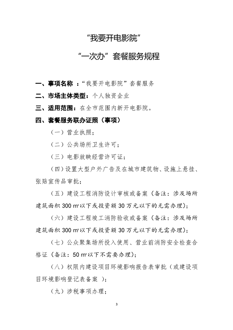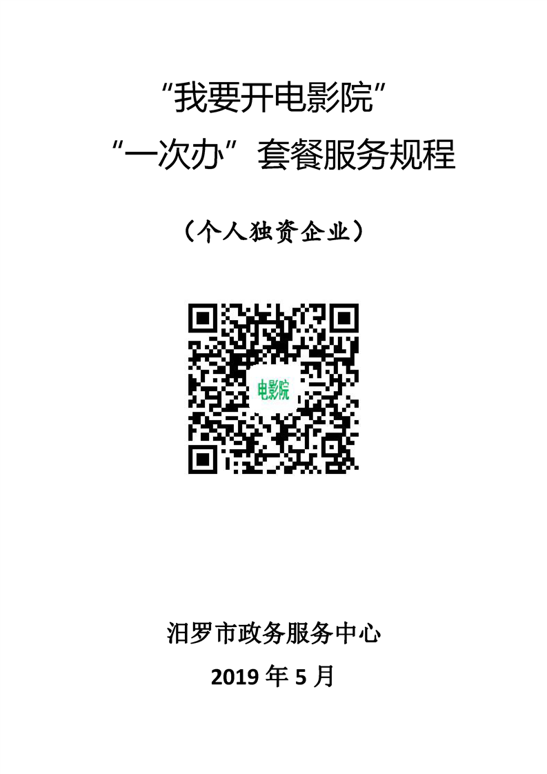 “我要开电影院” 一次办”套餐服务规程 (个人独资企业)