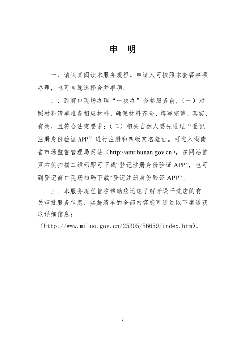 “我要开干洗店” 一次办”套餐服务规程 (个体工商户)