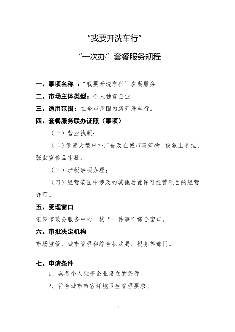 “我要开洗车行” “一次办”套餐服务规程 (个人独资企业)