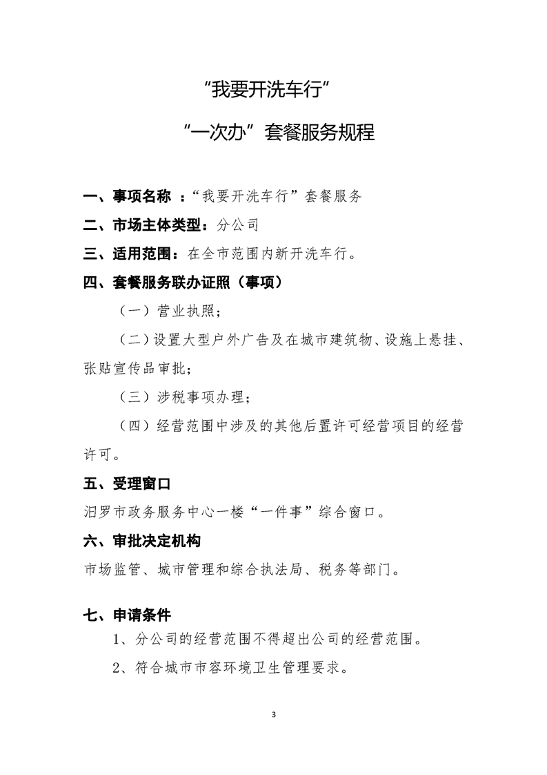 “我要开洗车行” “一次办”套餐服务规程 (分公司)