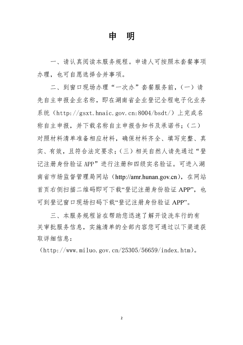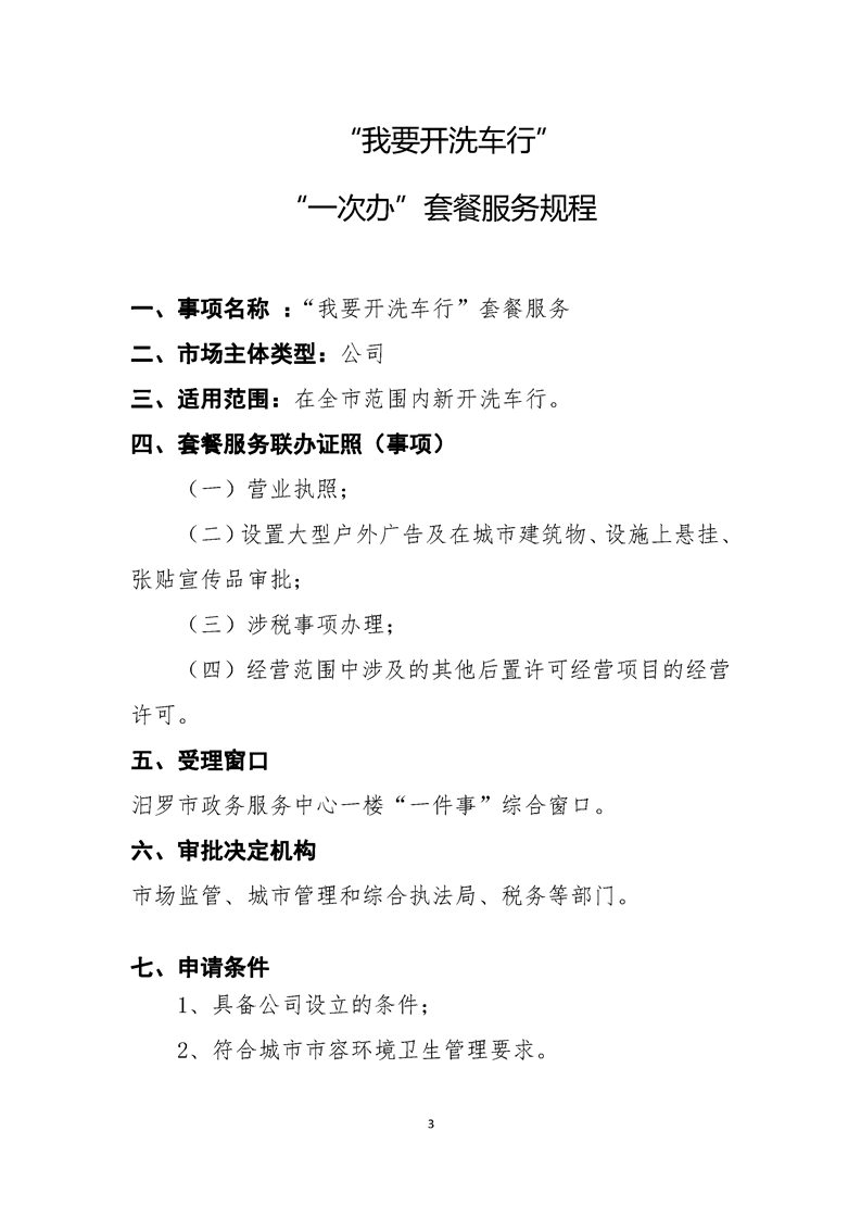 “我要开洗车行” “一次办”套餐服务规程 (公司)