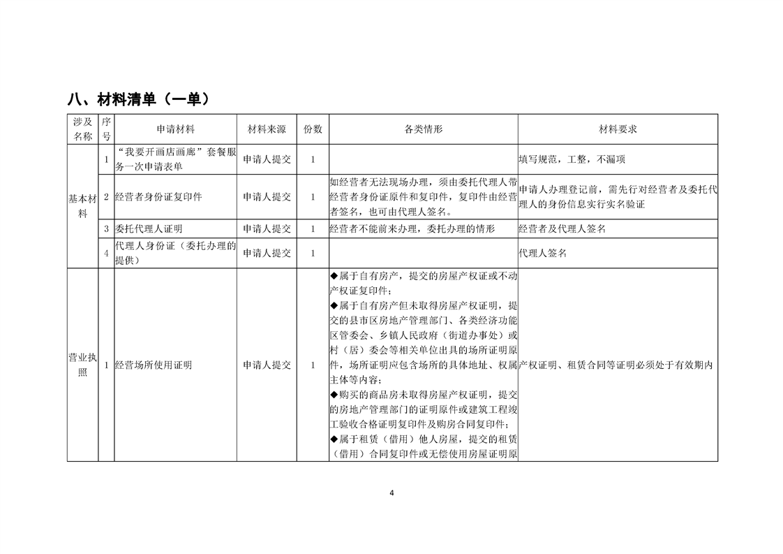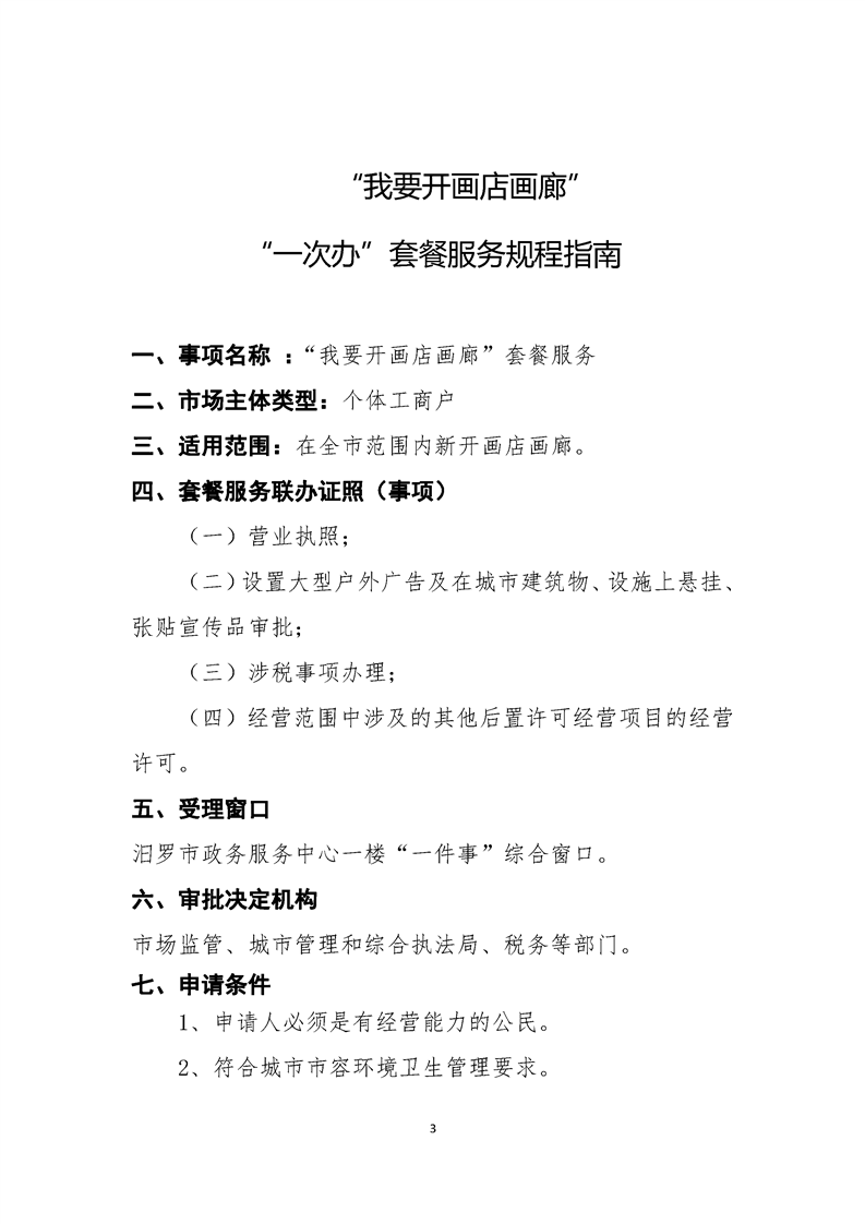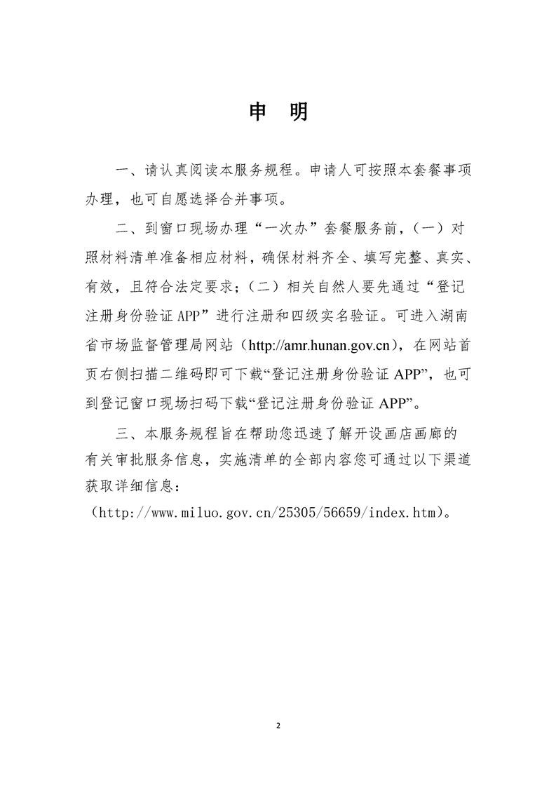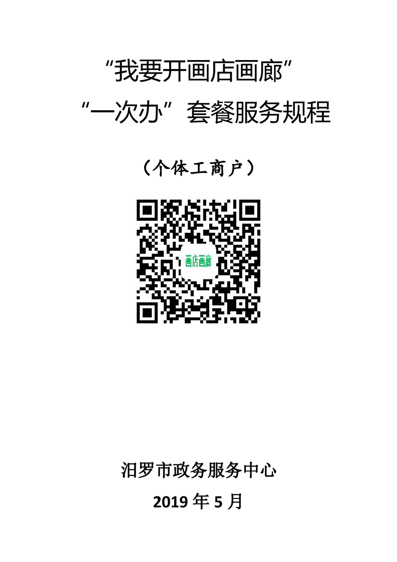 “我要开画店画廊” 一次办”套餐服务规程 (个体工商户)