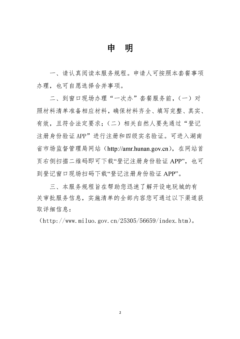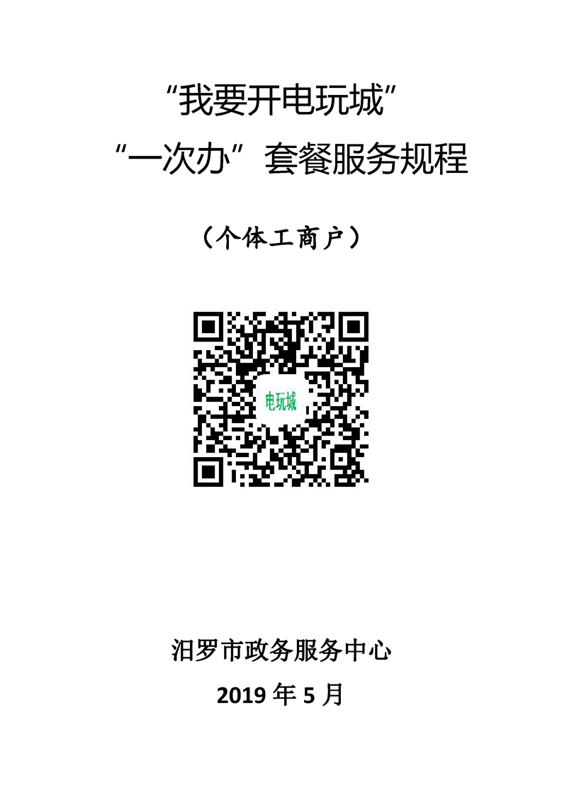 “我要开电玩城” 一次办”套餐服务规程 (个体工商户)
