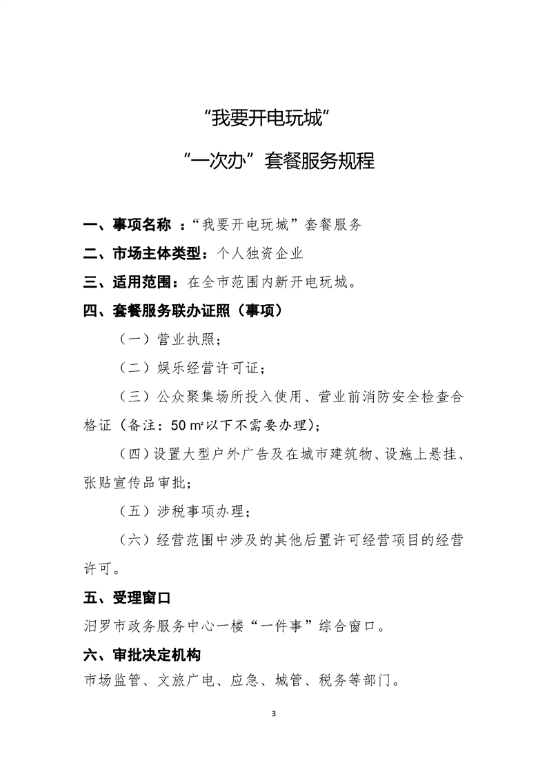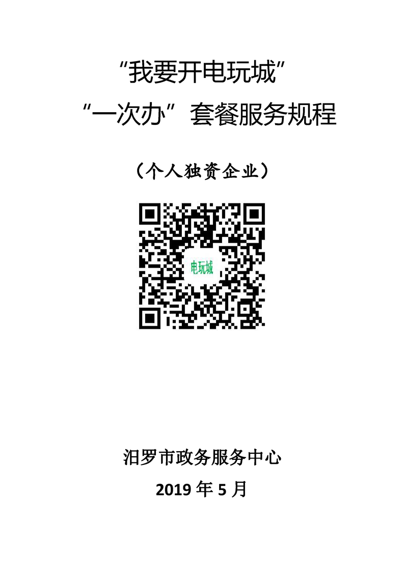 “我要开电玩城” 一次办”套餐服务规程 (个人独资企业)